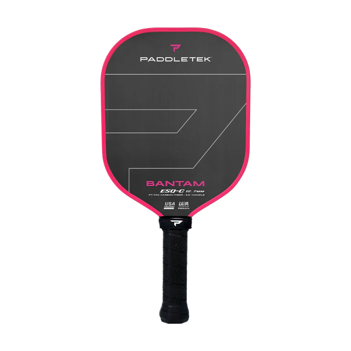 Vợt Bantam ESQ-C được thiết kế với sự hợp tác của vận động viên pickleball chuyên nghiệp, Andrea Koop, nhằm mang lại sự kết hợp giữa sức mạnh, độ xoáy và khả năng dễ đánh. Sợi carbon thô một chiều PT-700 được kết hợp với lõi Bantam mạnh mẽ hơn của chúng tôi để mang đến cho người chơi chuyên nghiệp khả năng kiểm soát sức mạnh và độ xoáy. Cán vợt dài 5,5 inch giúp giảm lực cản của gió và cho phép thực hiện cú đánh trái tay hai tay, trong khi điểm tiếp xúc bóng lớn và ổn định giúp tăng thêm sự tinh tế cho mỗi cú đánh. TUYÊN BỐ MIỄN TRÁCH NHIỆM: Vợt Bantam ESQ-C (Esquire) sẽ không chịu trách nhiệm cho bất kỳ sự khó chịu nào mà đối thủ của bạn phải chịu. Trận đấu đang diễn ra.